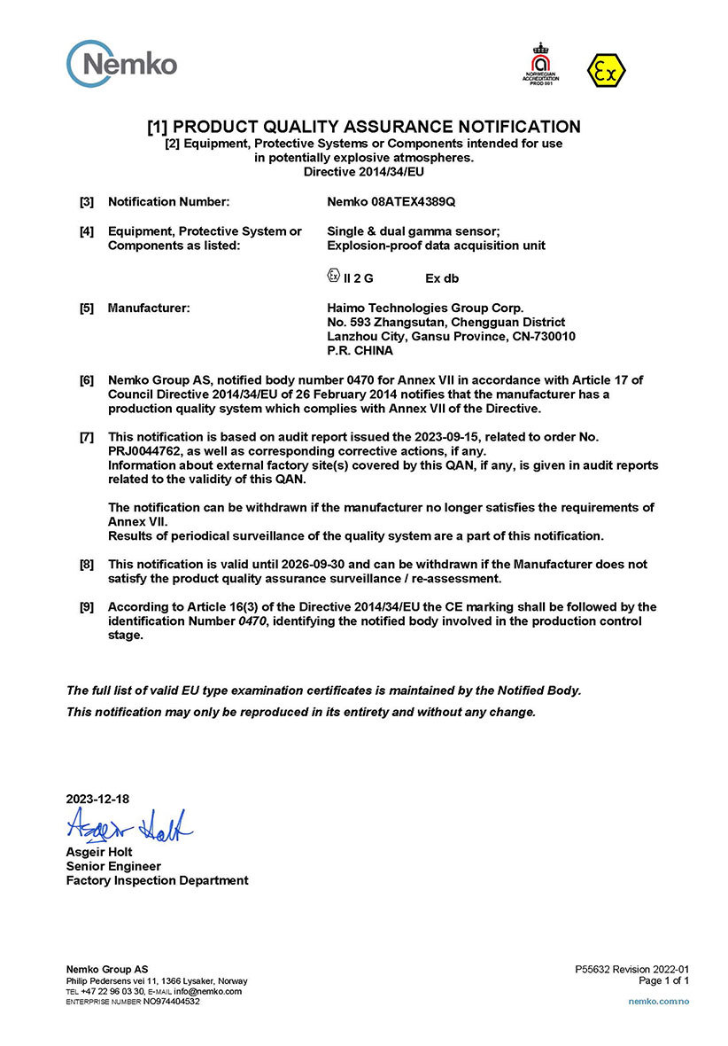 2020年9月,首次成为阿曼石油公司(OQ Exploration and Production L.L.C)多相流量计供应商。