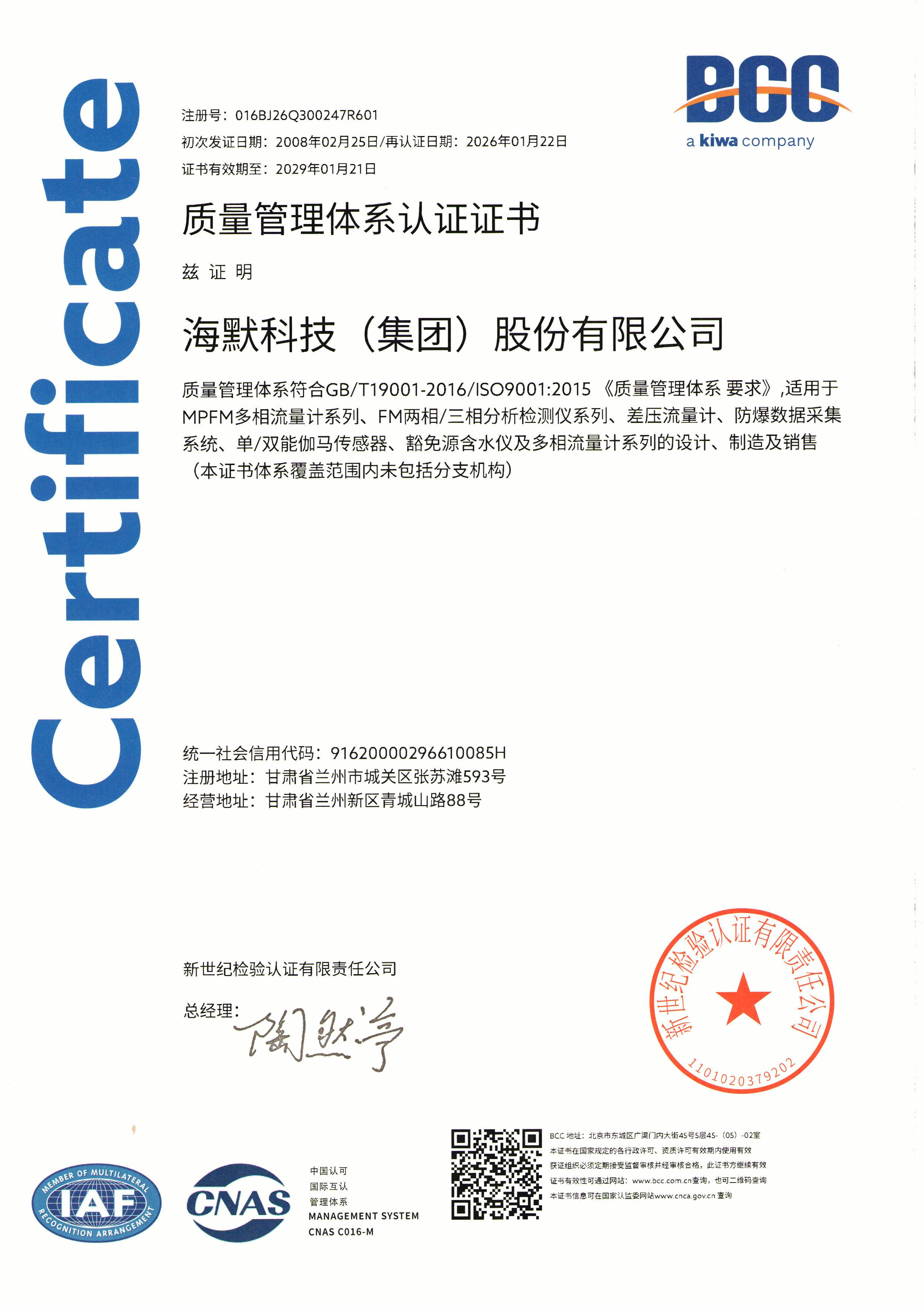 2021年11月,6686体育大口径(8英寸)全量程多相流量计关键指标计量精度创新的世界纪录。